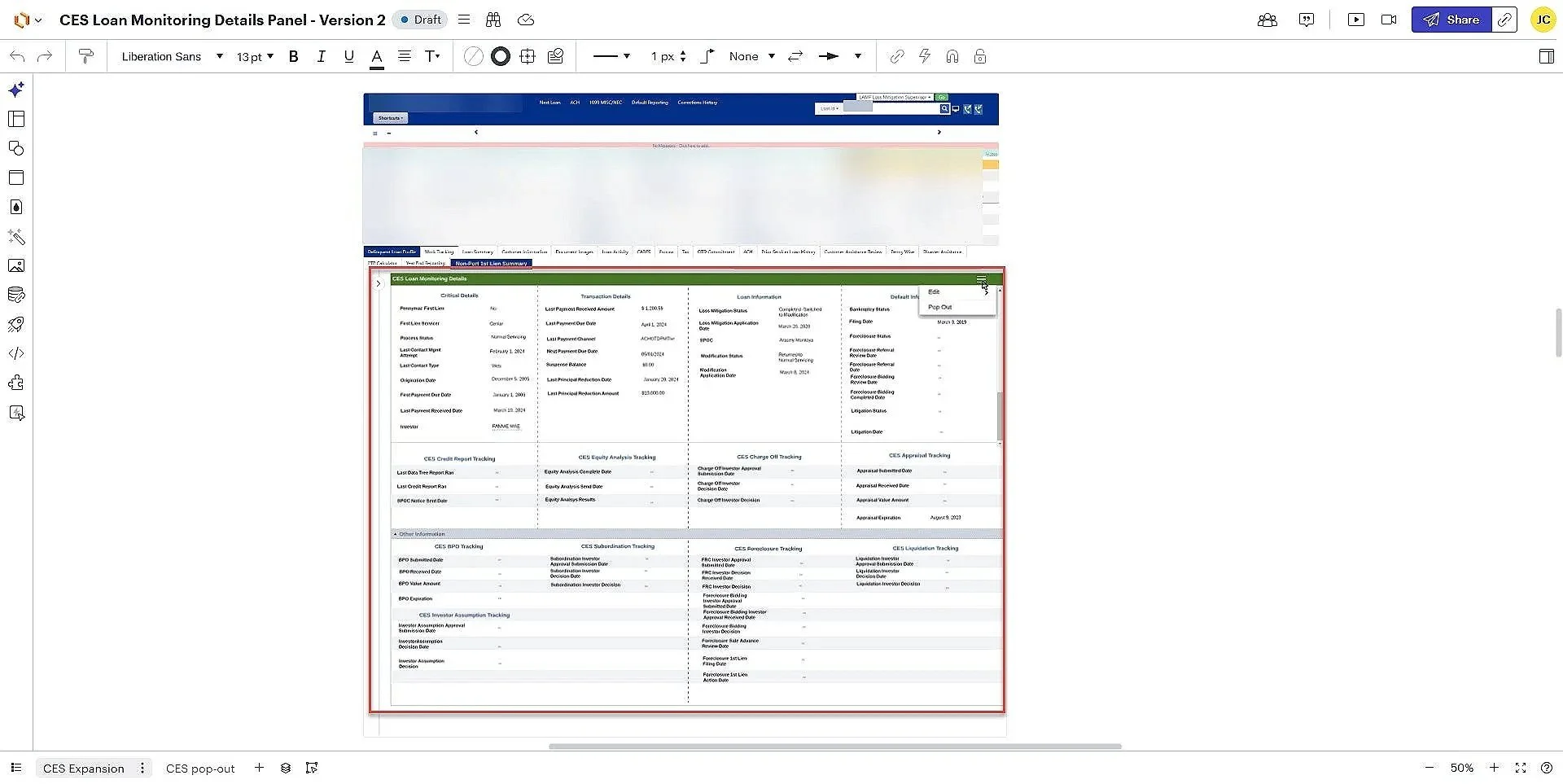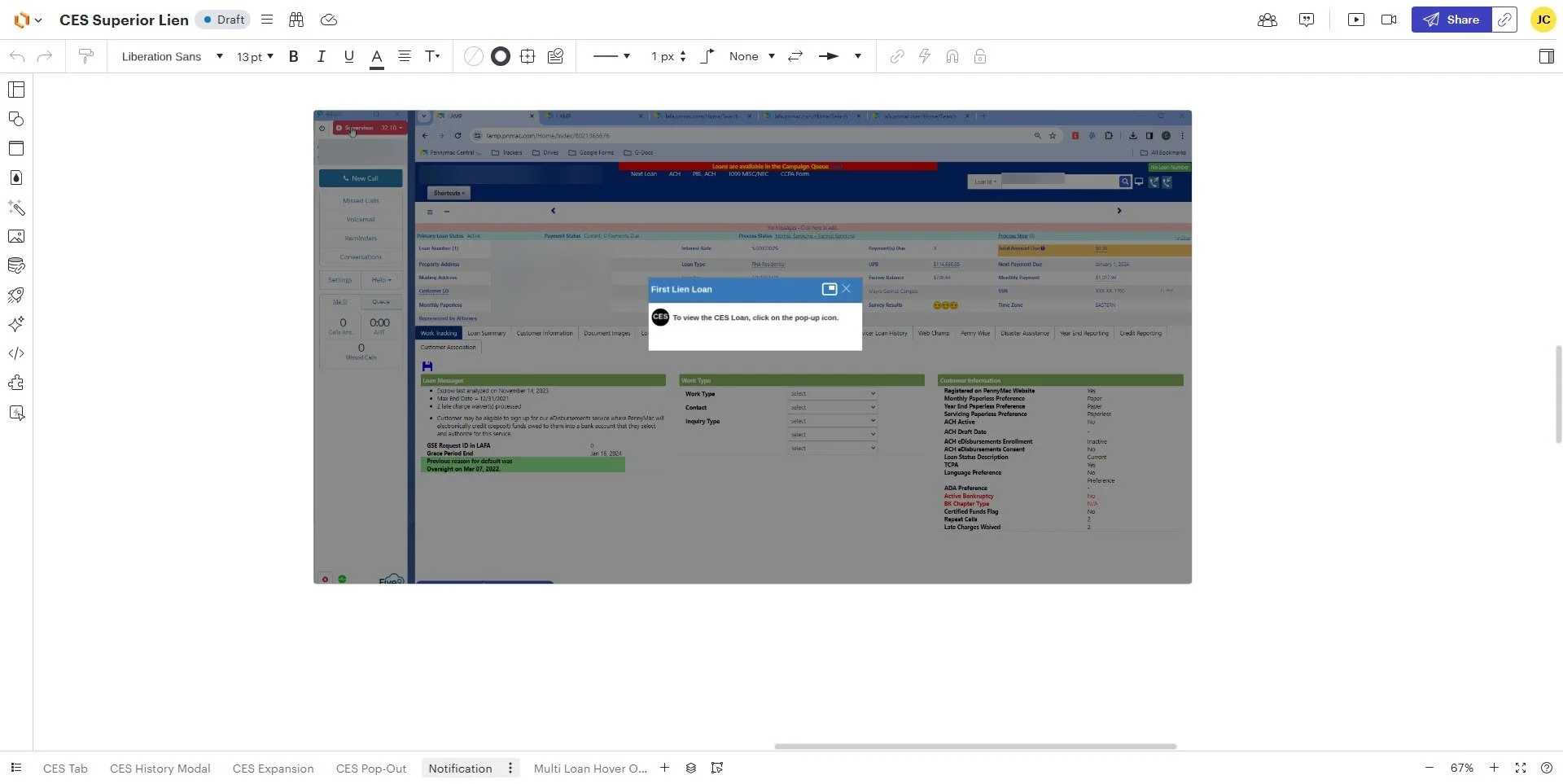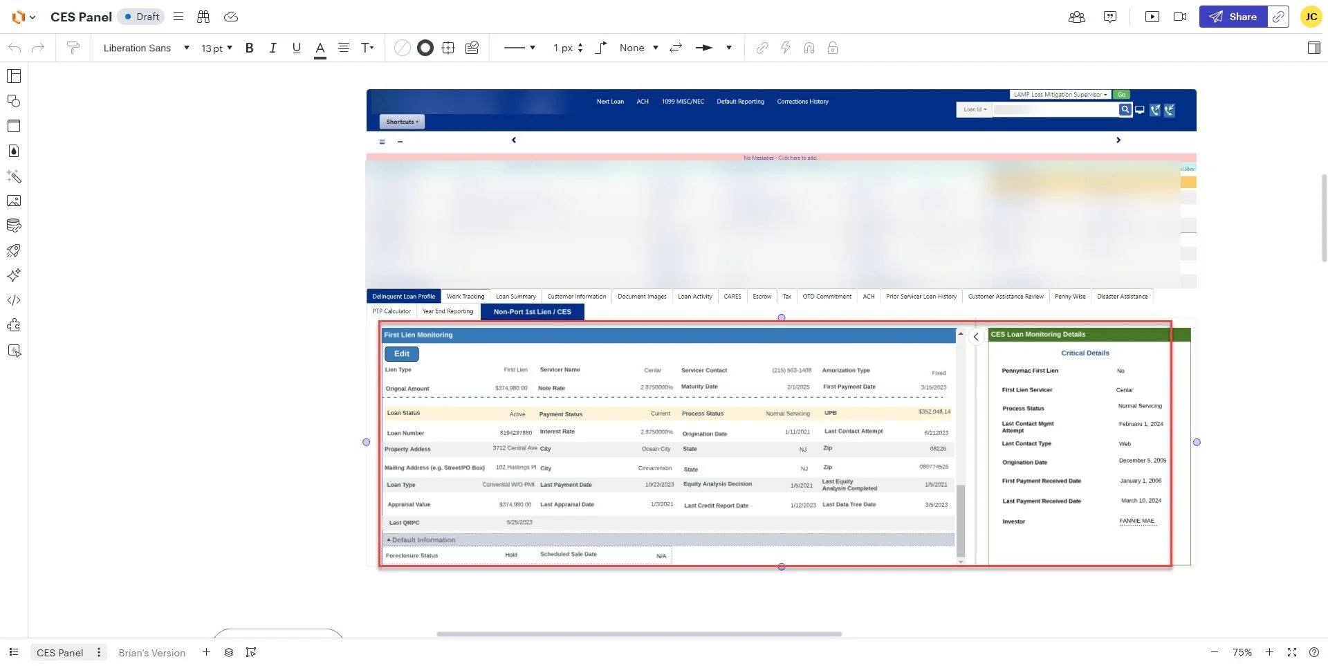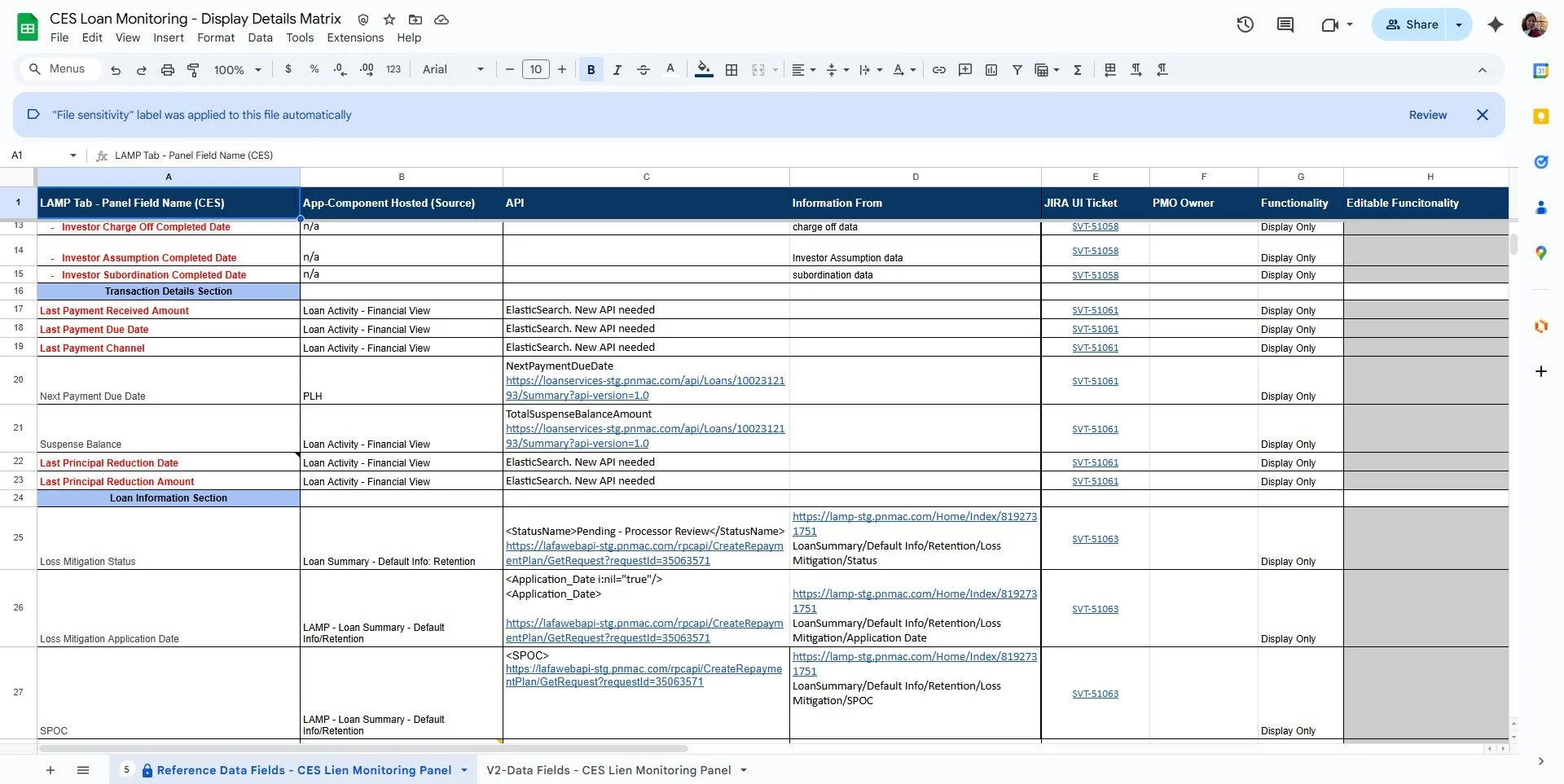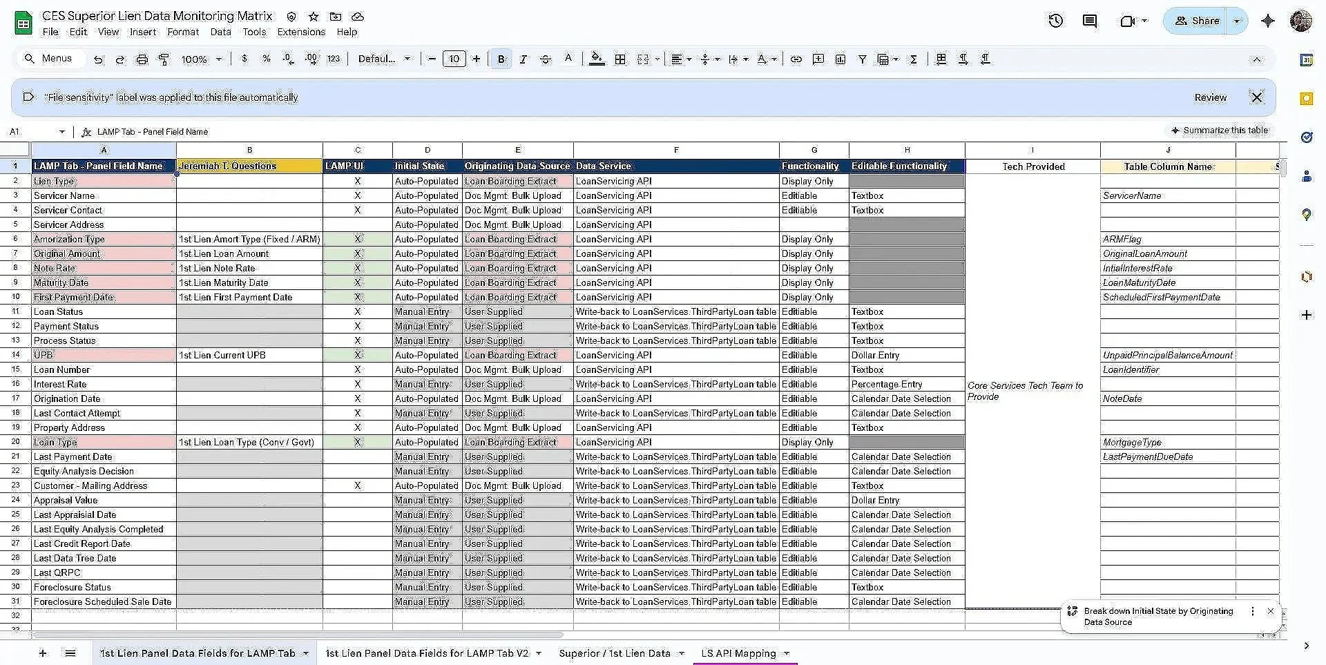 The following two screenshots are the two user case matrix for the two different panels I created for the tab. One panel is for the first lien with another mortgage company while the second panel is with the house mortgage company. These matrixes covers all the fields and data information needed for each field.